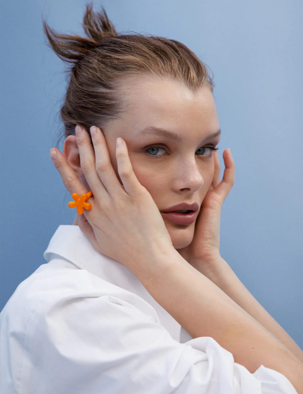 Cotton-blend fabric. Textured fabric. Long design. Evasé design. Wrap collar. Puffed short sleeve. Front slit. Knot detail. Bow closing on the back.