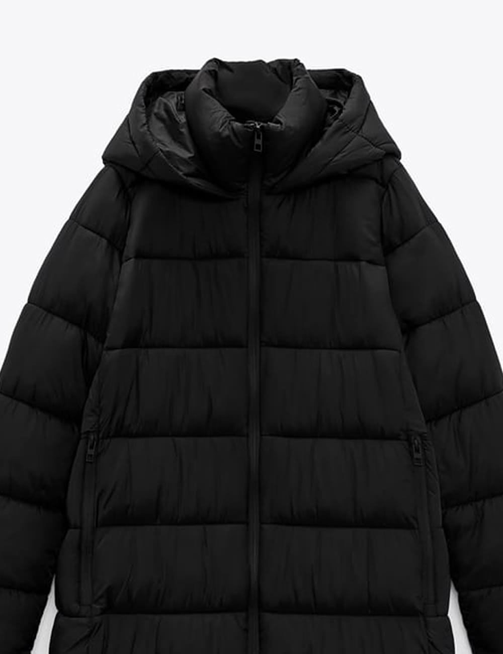 Cotton-blend fabric. Textured fabric. Long design. Evasé design. Wrap collar. Puffed short sleeve. Front slit. Knot detail. Bow closing on the back.